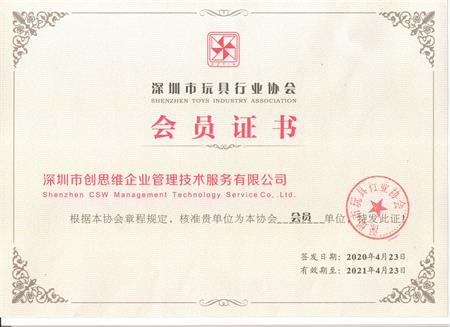 2020年玩具行業協會會員證書