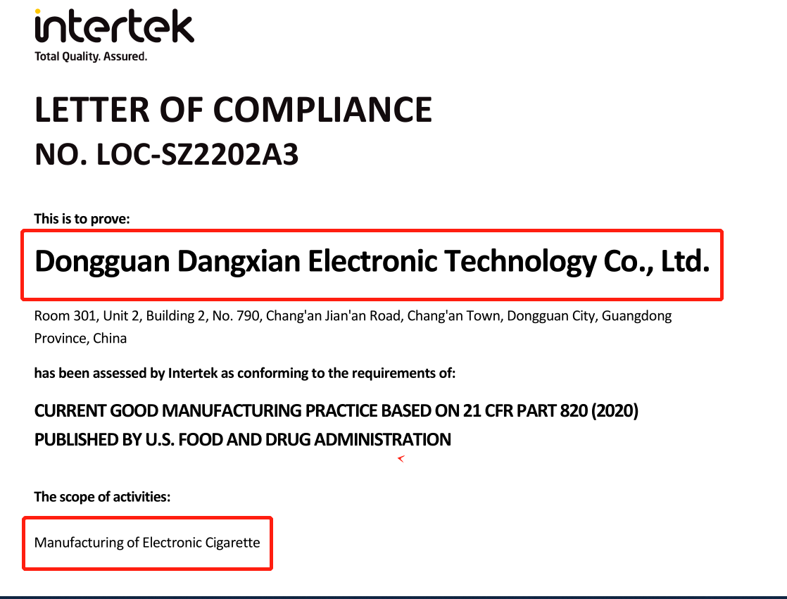 當(dāng)先電子2022年在創(chuàng)思維中國驗(yàn)廠網(wǎng)輔導(dǎo)下順利通過電子霧化器GMP-820認(rèn)證審核。