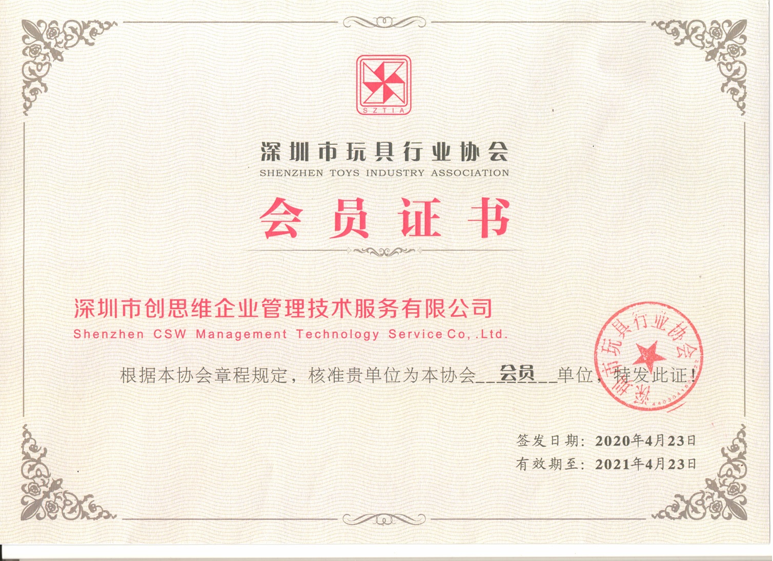 2020年玩具行業(yè)協(xié)會(huì)會(huì)員證書(shū)