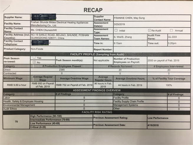 廣東美的集團電熱電器制造有限公司順利通過AMAZON亞馬遜驗廠